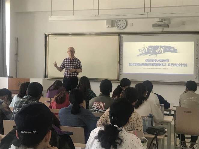 整场报告围绕《教育信息化2.0行动计划》(以下简称2.0行动),针对新时代信息技术教师成长与发展存在的困惑,就2.0行动等相关政策解读、信息技术教师如何推进计划等方面展开阐述。报告强调循序渐进、长善救失、因材施教的教育规律并着重分析解读了2.0行动具体内容及其创新发展,加强了同学们对教育信息化发展新定位的认识。重点从信息技术的发展进程出发就信息技术教师该如何推进教育信息化建设与同学们展开讨论,引发了同学们对未来教育的深入思考,并就此进行了深入交流。同时积极鼓励同学们在未来工作学习中加强自身专业素养,注重