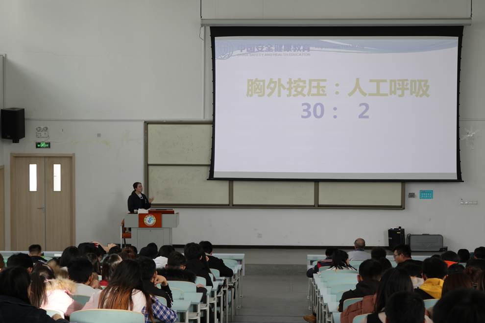 讲座由紧急救护知识、健康的生活方式、职业病的预防和治疗三部分组成。张秀清老师首先详细地讲述了紧急救护基础知识,介绍了心肺复苏的“黄金十分钟”,演示了心肺复苏的正确方式,以及遇到遇险人员时,从耳听、面感、眼看判断是否有呼吸的正确方法和技巧。