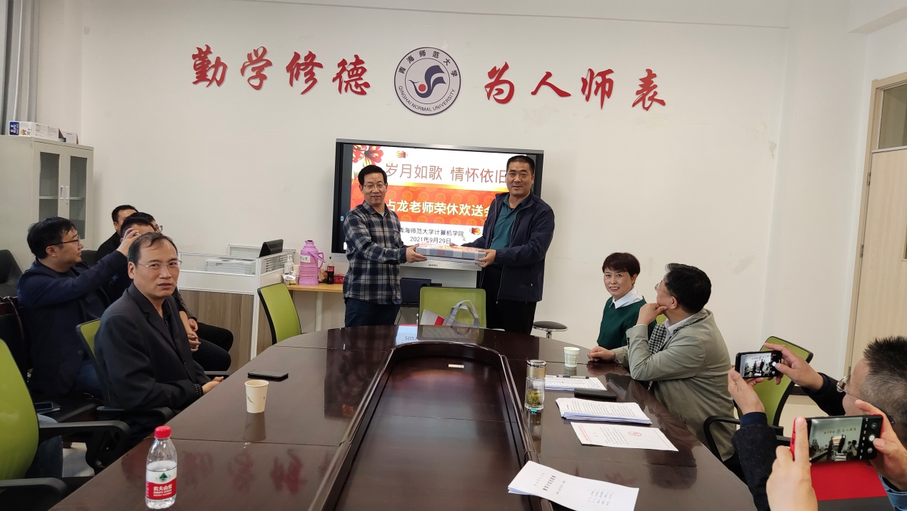 最后,曹玉林代表公司为郭占龙赠送精心准备的光荣退休纪念品,并请大家与郭老师合影留念。