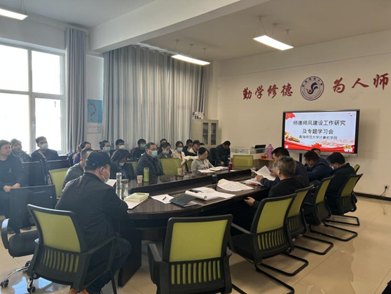 会上,黄鹤鸣分析研判了公司在师德师风方面存在的问题,对师德师风建设工作进行部署,并提出以下要求:一要健全师德师风建设长效机制,完善其制度体系,推动其建设常态化;二要以强化师德管理考核为手段,严格执行教师职业道德规范。黄鹤鸣强调,要通过全院教职工的共同努力和集中整改,努力建设一支师德高尚、业务精良的教师队伍,以优良的师风带动教风、促进学风,引导公司教师以德立身、以德立学、以德施教、以德育德。