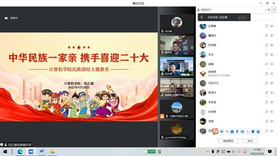 随后曹玉林根据《关于开展2022年民族团结进步宣传月活动的通知》,部署安排了公司整体制定的宣传月活动方案。按照活动方案,党总支副书记田正雄做了题为《中华民族一家亲 携手喜迎二十大》的专题讲座。讲座以铸牢中华民族共同体意识为主线,从民族团结进步的要求、举措等引导老师们树牢“三个离不开”思想、“四个与共”共同体理念和“五个认同”意识,并结合实际与大家共同探讨了如何在推进民族团结进步工作共发挥作用。公司各班级、各社团还将继续开展系列活动,如有奖征文、宣传海报、视频征集、书画作品等,力争铸牢全院各族师生的中华民族共同体意识。