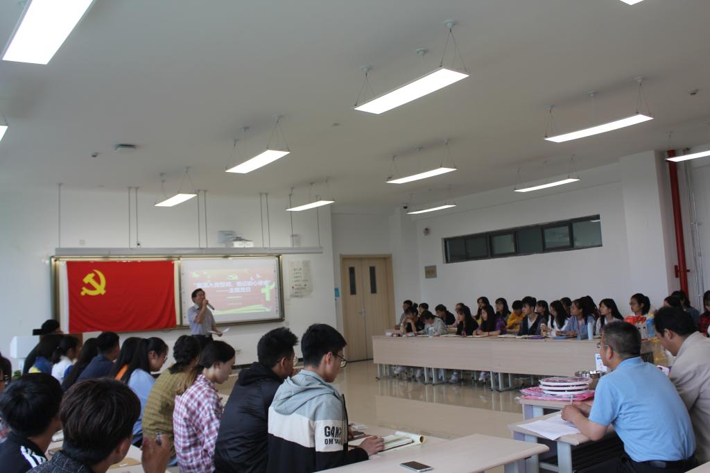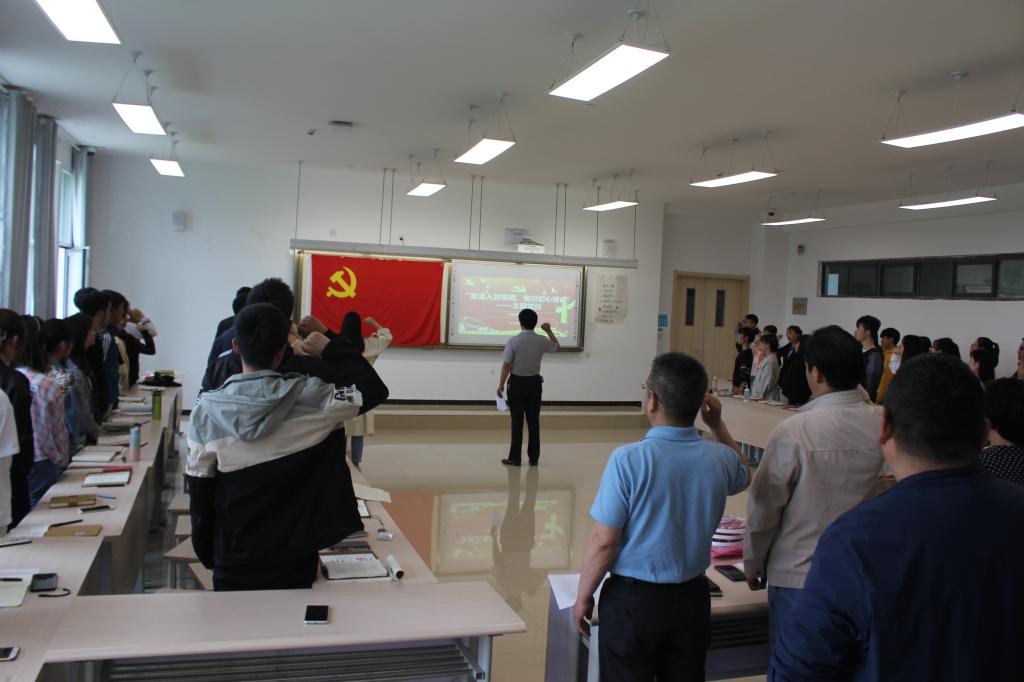 活动在雄壮的国歌声中拉开序幕。全体党员佩戴党员徽章面向鲜红的党旗,举起右手重温入党誓词,找回入党之初的感动、再次表达了对党的忠诚和热爱之情。随后,全体参会人员共同学习了《中国共产党支部工作条例(试行)》第三章和习近平总书记关于加强教师队伍建设和青年理想的讲话,再次熟悉党规掌握新思想。在讲党课环节,员工党员张璇以《我们都是追梦人》为题给大家上了一堂生动的微党课,她通过分享自己的学习心得来激励所有党员要树立远大理想、坚定政治信仰,为实现中国梦贡献力量。