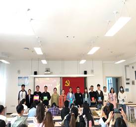 活动中,全体党员首先重温了入党誓词,大家面对党旗,举起右拳庄严宣誓,接受了一次深刻的党性教育和灵魂洗礼。接着,全体党员集体观看了微视频两会之《为人民服务》,并结合自身成长和学习生活经历畅所欲言,回忆了自己的入党初心,讲述了自己的入党故事,分享作为一名党员的感想感悟。支部给10名在6月入党的同志举办了集体“政治生日”仪式,赠送了政治生日卡。随后,支部为13名新党员佩戴党员徽章并分发了《中国共产党章程》。