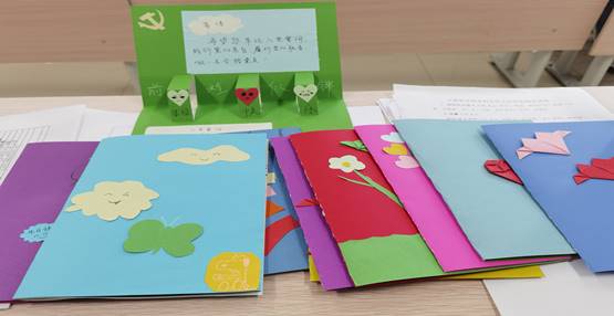 活动前,支部成员用彩笔、剪刀、直尺、胶水等,制作出一张张精美的卡片。一张小小的卡片既增进了彼此的情感,又坚定了党员们不忘初心、永远跟党走的决心。