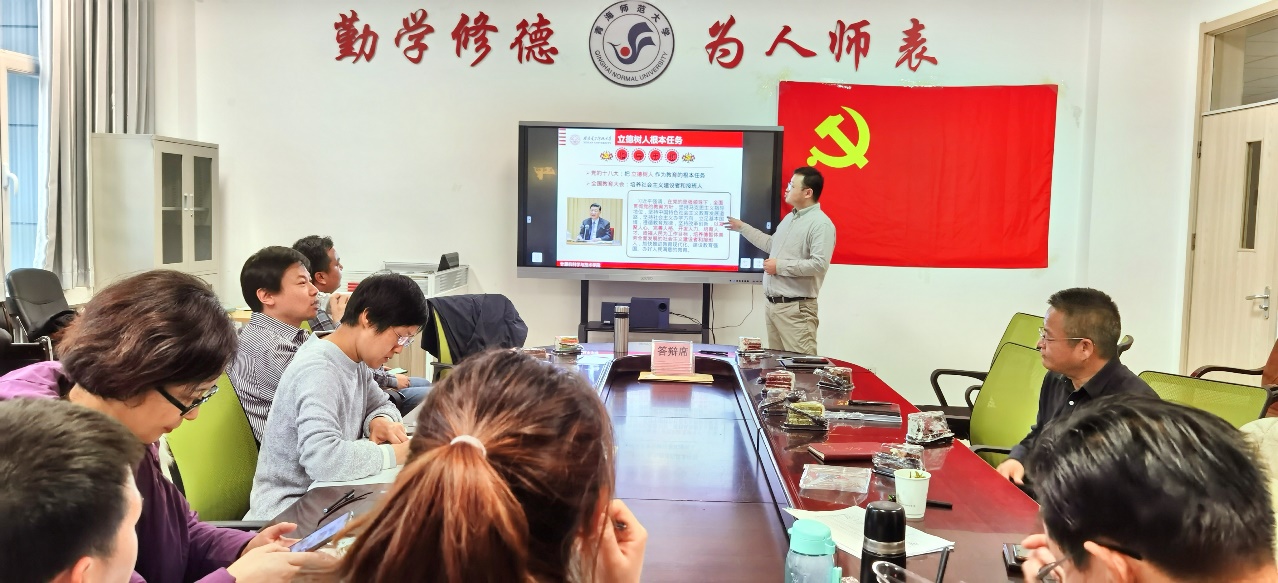 李瑞同志以“课程思政与立德树人” 为主题为大家上了一堂生动有意义的党课,围绕习近平总书记在全国教育大会上的讲话精神,坚持立德树人的实践育人体系,通过五位一体架构和专业实践能力培养,提出了三全育人的新模式、最大程度与行业需求衔接,激发党员同志带头努力办好人民满意的教育。