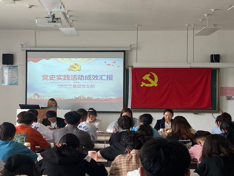 会上,全体党员重温了入党誓词。接着由党史学习教育工作小组负责人黄璐婕、郭梦艳、安玉洁、张亚同志结合党史学习教育工作,围绕党的十八大以来党和国家事业历史性变革和成就进行交流发言。张亚同志谈到,习近平总书记在党的十九大报告中指出:“强军兴军开创新局面。”,支部宣讲团以军事为主题在班级进行宣讲时,同学们的反应强烈,激发了大家的强国情怀。郭梦艳同志谈到,通过学习,真正理解悟透中国共产党为什么能、马克思主义为什么行、中国特色社会主义为什么好等重大问题,也加深了我个人切实发挥示范带头作用的信念。其他同志纷纷表示要“潜心笃志”,继续深入学党史,在党史学习教育中明确前进方向,坚定理想信念。