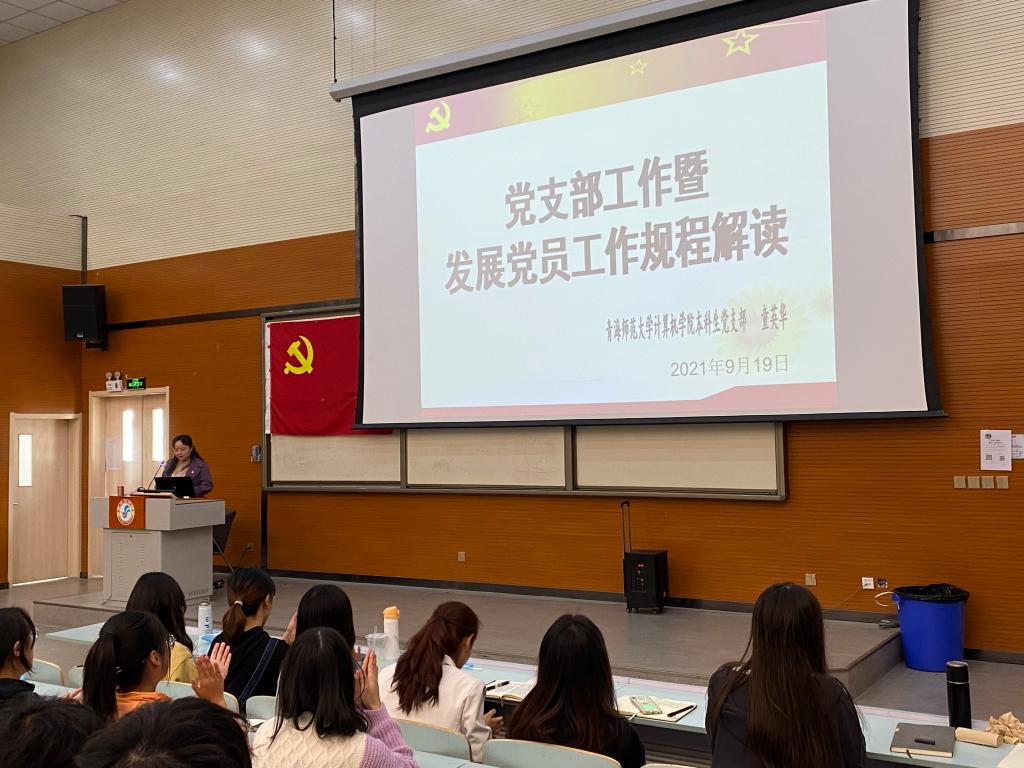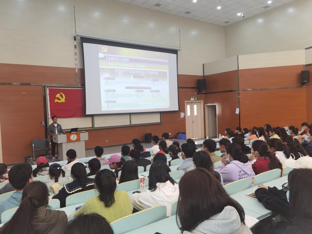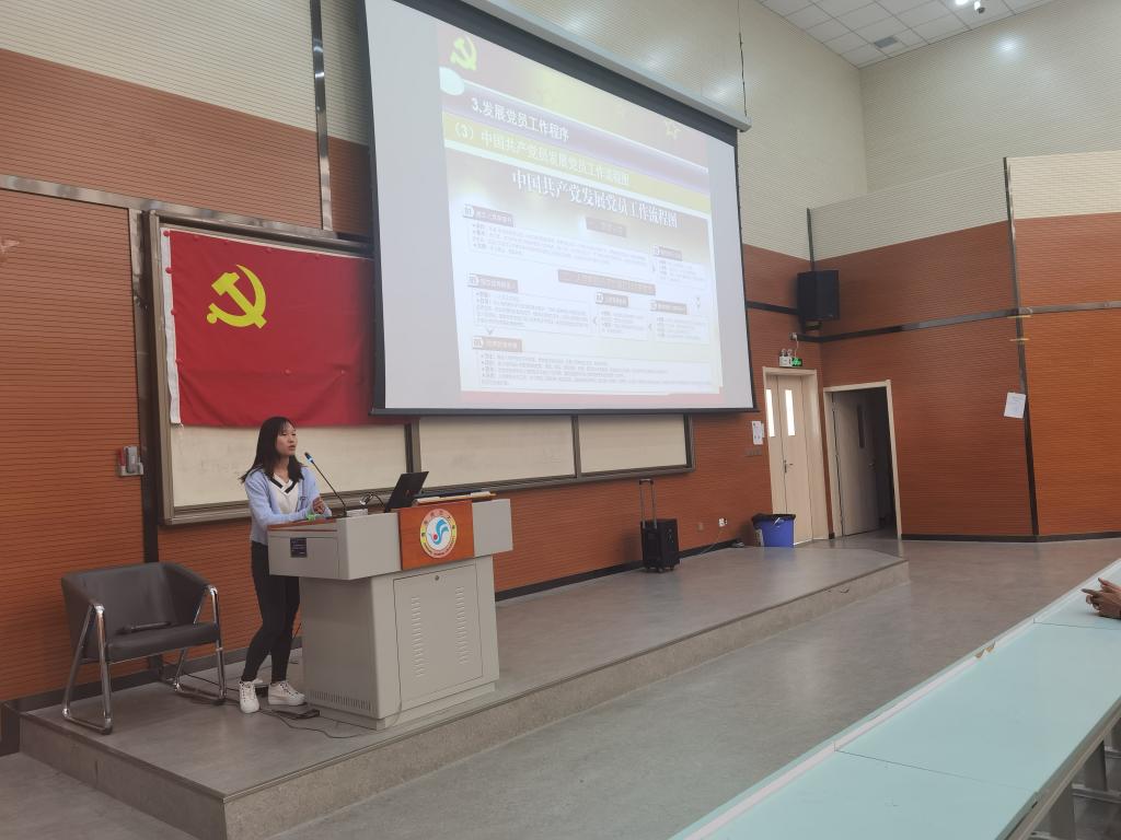 其次,支部副书记童英华向新生们详细介绍了发展党员的具体流程,入党积极分子和发展对象的考察与接收、入党申请书和思想汇报的书写方法等内容,解答了同学们对入党过程中的诸多疑问。