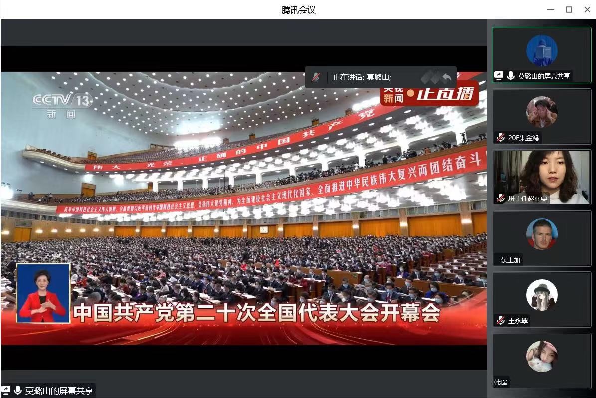 20A班郝文惠:党的二十大的胜利召开,肯定了自党的十八大以来做出的重要贡献,改革开放和社会主义现代化建设取得重大成就,党的建设新的伟大工程取得显著成效等。十年来取得的伟大成就是党和人民一道拼出来,干出来,奋斗出来的,新时代青年应与时代同步伐,与人民共命运,更好实现人生价值,升华人生境界。