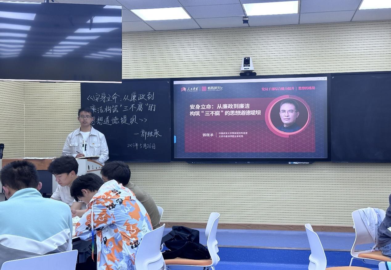5月26日下午15时,TapTap点点本科生党支部组织全体党员观看由省委组织部主办,省委党校(省行政公司)、青海干部网络公司承办的2023年第4期“昆仑大讲堂”。中国政法大学思政研究所老师郭继承作了题为《安身立命:从廉政到廉洁,构筑“三不腐”的思想道德堤坝》视频讲座。