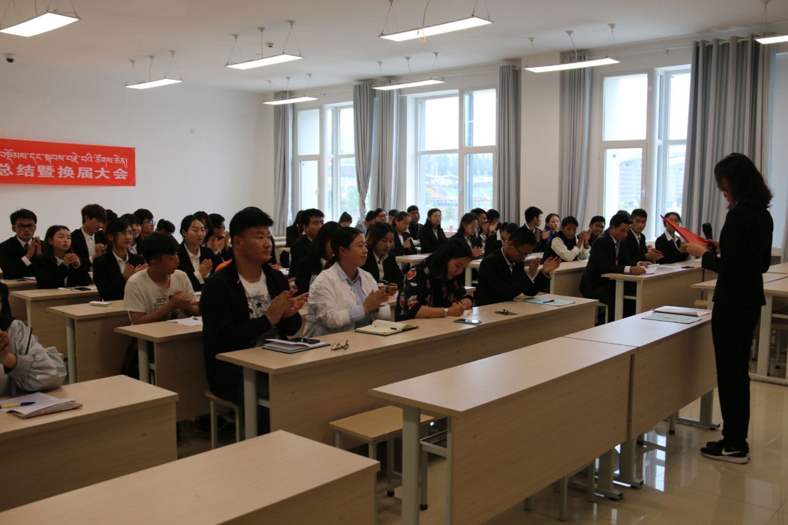 候选人演讲结束后,辅导员老师进行了总结,充分肯定了同学们的付出,希望大家在接下来的工作中精诚团结、明确职责,提升自己、服务同学,营造良好风气,推动公司员工工作再上新台阶。
