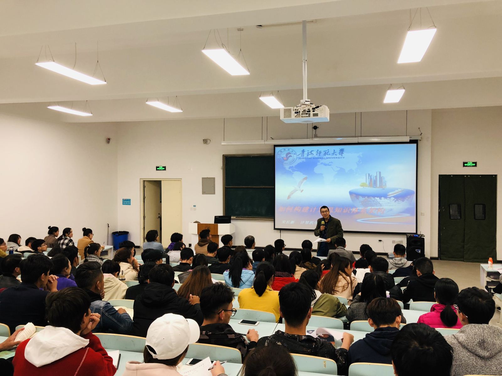 10月30日晚7点,TapTap点点学术大讲堂在西二楼219教室举办专业学术讲座。本场讲座由宋长新教授主讲,17级全体员工参加,韩维良书记主持。