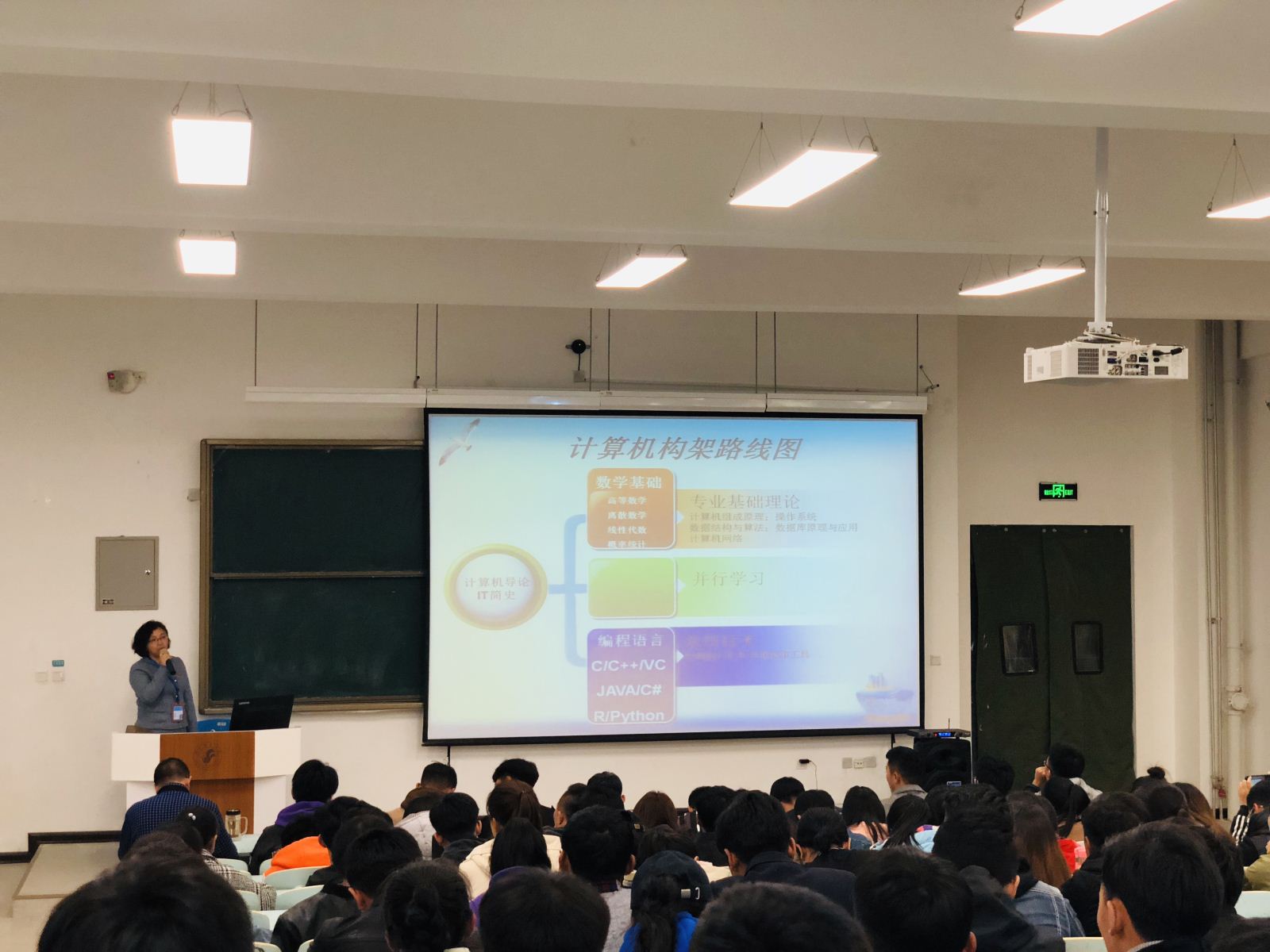 宋长新教授以“如何构建计算机知识体系架构”为题展开讲授,她从计算机知识体系、计算机知识框架的核心内容、自学的重要性、如何学会编程、学习方法等五个方面详细讲述了计算机的相关专业知识。宋教授详细讲述了计算机学科知识架构,相关课程以及内在的逻辑联系,强调基础课程的重要性,诸如计算机组成原理、汇编语言、操作系统等课程在计算机知识架构中具有重要的地位;在谈及如何学习编程时,宋教授说到模仿、大量的训练是编程技能提高的必径之路。