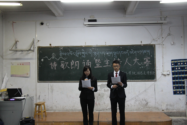为积极响应公司德育学分建设的号召,提高老员工对中华传统美德的认识和文学素养,公司于2015年11月19日晚在北苑理科楼137举行了“诗歌朗诵暨迎新晚会主持人选拔大赛”。公司院办公室田正雄老师、辅导员头旦才让老师和赵丽雯老师、员工会全体成员及各参赛选手共同相聚137教室。