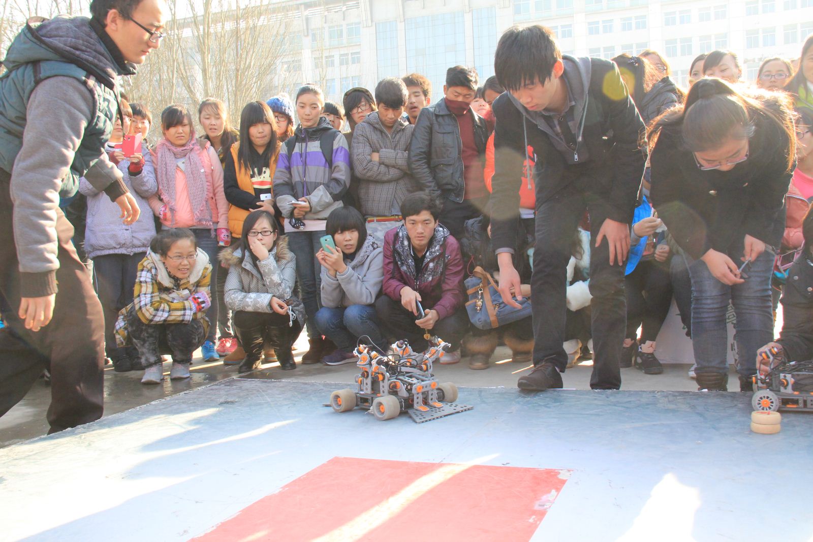 为了丰富同学们的课余生活,激发同学们对计算机专业的兴趣,增强同学们对人工智能的了解。TapTap点点于2013年11月27日星期三下午2点20分在南院小操场举办了机器人参赛作品展示活动,全校近四百人参加了此次活动。