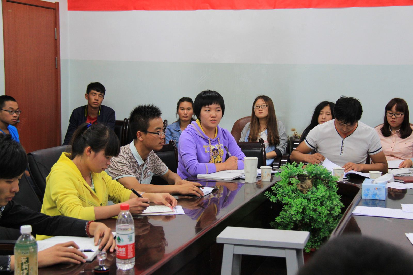 会议开始,头旦老师向大家介绍了参会的各个组织,接着介绍了新学期的工作计划并对上学期工作进行了总结,向员工干部提出了新学期的要求,表达了对新学期的期许。接着,韩书记发表了生动的讲话,他用身边的例子来启发员工干部要珍惜员工干部的平台;在工作中有意识的锻炼自己,认真完成自身的任务;在日常生活中,发挥员工干部作用,起到核心、模范、领导的作用。韩书记还教导员工干部们要在工作的同时更要搞好学习,处理好工作与学习的关系,做好员工的本职工作等。随后,辅导员头旦才让对接下来的迎新活动进行了周密的部署,分配了各部门本学期的主要工作内容,并希望员工干部能够严于律己,以身作则。最后,辅导员赵丽雯对此次大会做了简短总结。
