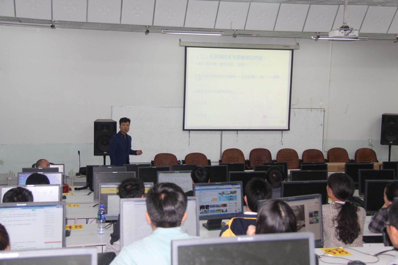 首先,韩书记对大家介绍了公司针对毕业生就业的相关安排,并指出了开展就业培训和招聘会的重要性,动员大家积极参与,珍惜机会,把握机遇。随后,公司主讲人李泊成进行培训宣讲,他强调了在当今社会互联网知识对人们日常生活的重要性,从而总结出社会对人才需求的方向,并向大家介绍了公司针对社会需求对毕业生就业方向的详细培养办法,对毕业生在未来的工作中提供技术支持。最后,工作人员对报名正式培训的同学进行统计,现场气氛活跃,同学们都很积极。