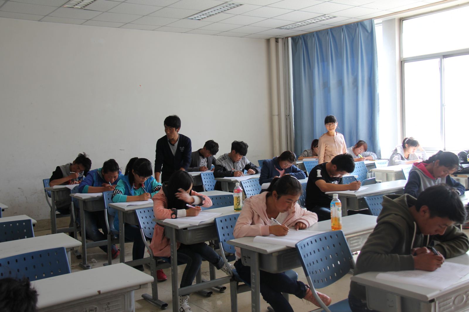 13级122名同学全部参加此次考试,共设有6个考场,各考场设有两名监考人员。在整个考试过程中,同学们认真作答,自觉遵守考场纪律。考试期间,辅导员田正雄、韩生龙老师在各个考场进行巡考,监督检查考试情况,整个考试过程有条不紊。