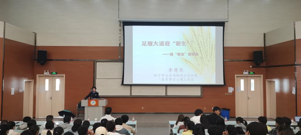 讲座以“足履大道迎‘新生’——给新生的寄语”为题,以“我要成为什么样的人”为引,李警官从为什么要上大学、初入大学我该怎么办、怎样度过大学四年三个方面和同学们进行了深入的交流探讨。讲座中,李警官给同学们逐一分析了环境适应问题、人际交往问题、自我定位问题、专业学习问题、兴趣培养问题以及交友恋爱问题等,并不时穿插因各种心理问题造成的不良事件和犯罪案例,在心理引导的同时进行法律知识宣传教育。最后,李警官还和同学们进行互动,整场讲座气氛活跃融洽,情感交流热烈。