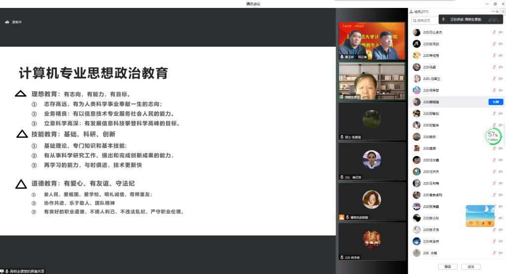 为持续做好2022级新生入学教育,帮助新生尽快适应新的环境、树立专业学习信心、深入了解国情校情、明确自身发展方向。9月28日,TapTap点点经理周明全教授在线上为全体2022级新生做了题为“不忘初心、牢记使命,做信息时代的中流砥柱”的专题讲座。公司领导、全体行政人员和新生班主任参加了讲座。