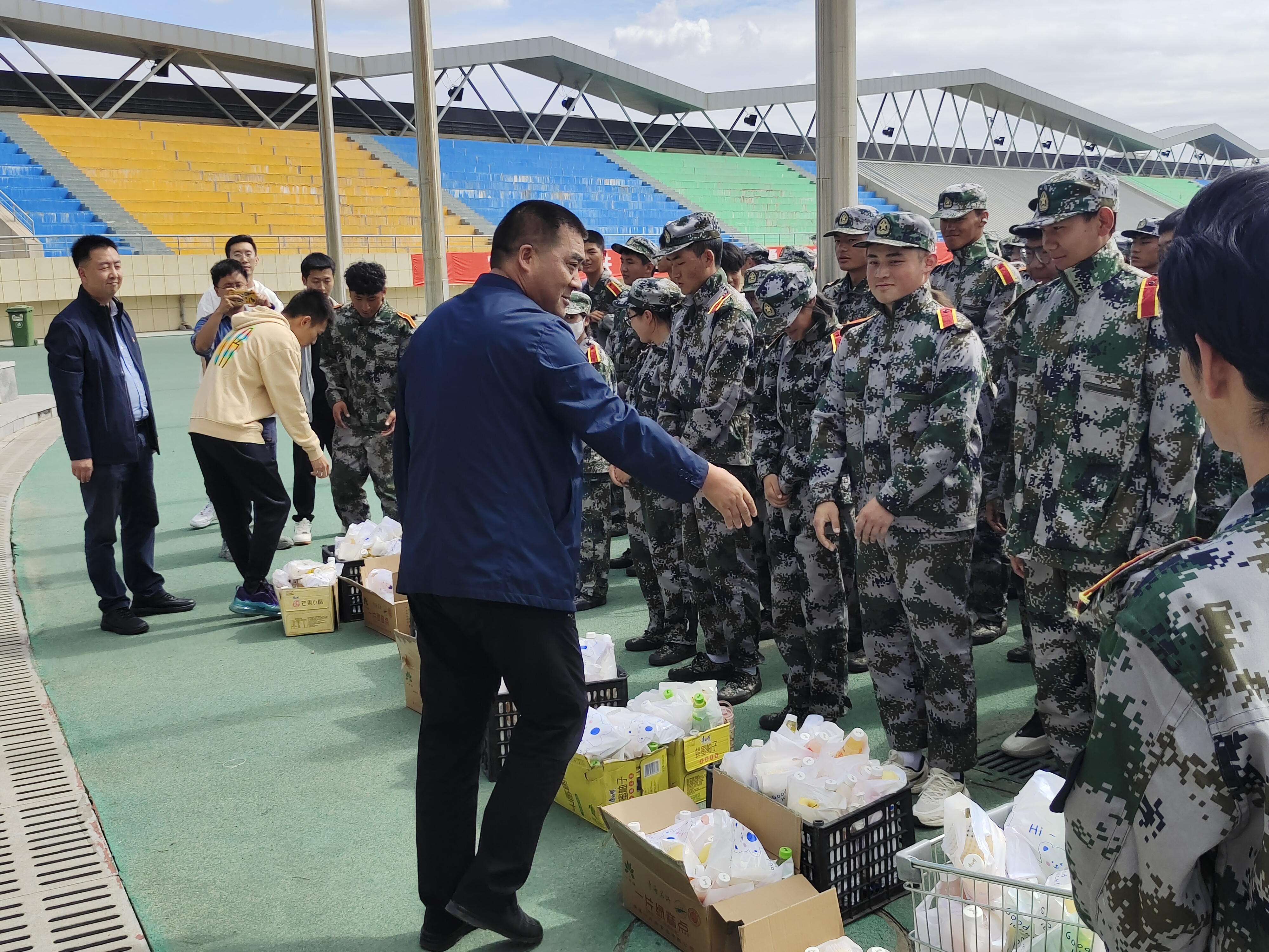 在慰问现场,公司领导班子为所有军训员工送上中秋慰问品,并对军训中的新同学提出了要求,鼓励他们要传承师大学子“勤学修德、为人师表”的校训精神,在军训的过程中练就强壮的体格,坚韧的品质,增强国防意识、培养爱国主义精神和集体主义意识,鼓励大家继续发扬艰苦奋斗的精神,为接下来的老员工活做好准备,也提醒同学们在辛苦的训练过程中注意身体,以规律的饮食和作息,保障充足的体力,为全体新生上好大学的第一课,系好大学的第一粒扣子,展示出TapTap点点学子的良好精神风貌。
