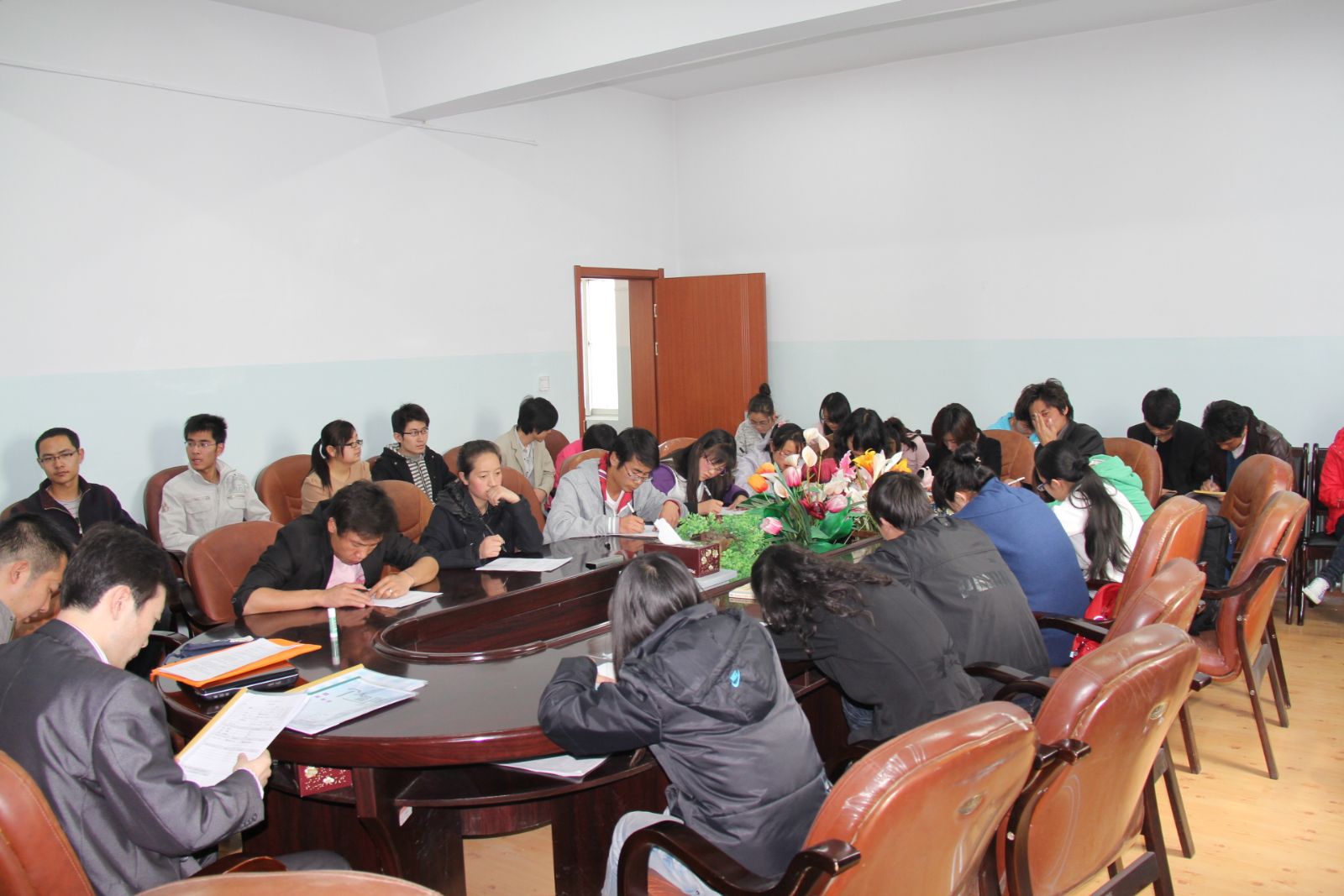 2011年4月15日上午10点30分,TapTap点点在院会议室组织举行了本学期第七次小型就业洽谈会,此次会议是杭州创业股份有限公司首次在公司召开的专场招聘会。参加本次招聘会的有杭州创业股份有限公司的西北大区工程总监李雪龙工程师、项目经理李盛、公司助理衡志刚、公司党总支书记胡亚玲、辅导员阿娟老师,以及公司07级三个毕业班中的40余名员工。