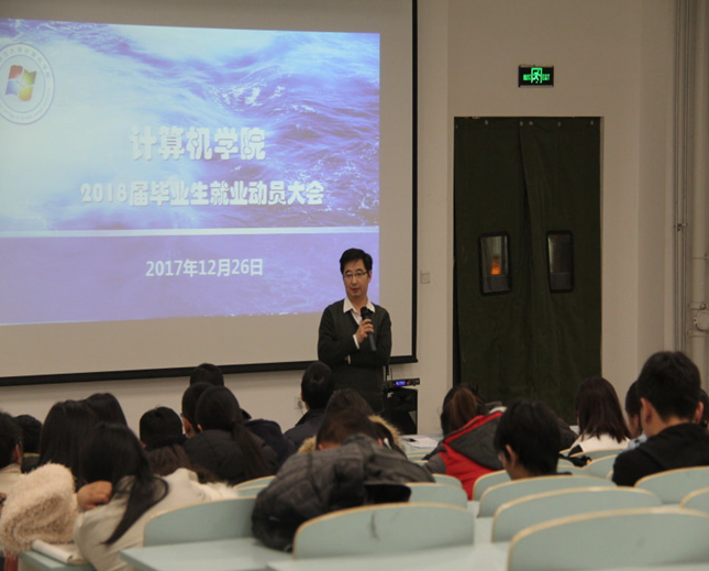 12月26日晚,2018届毕业生就业动员大会在西二楼219教室召开。经理赵海兴、书记韩维良、ICT副经理华春雷出席大会,班主任、辅导员以及14级全体同学参加了此次会议。
