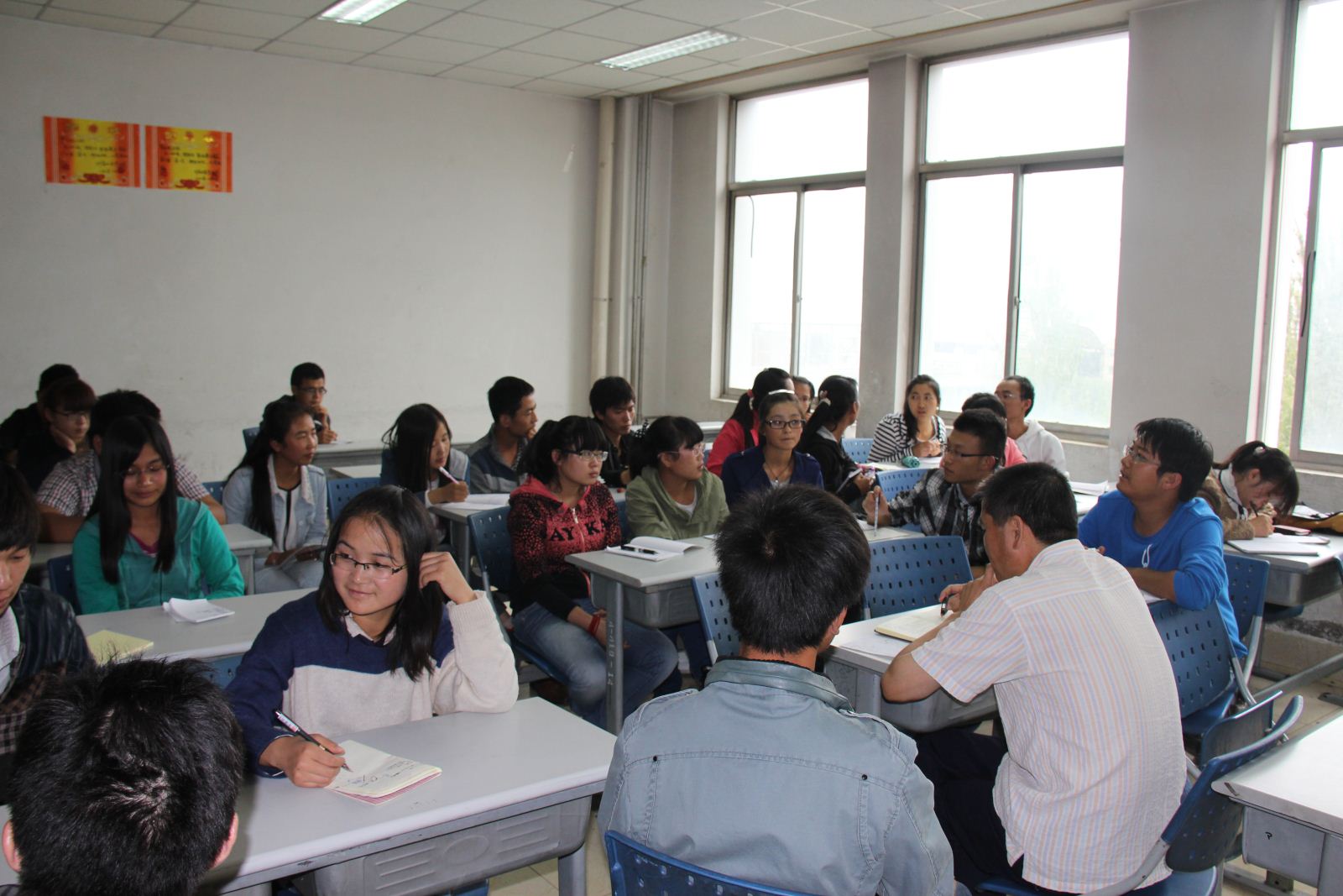 随后同学们就这三个问题提出了许多具有代表性的意见。在“四风”问题上,同学们认为领导干部要坚决克服在“四风”问题,多倾听师生意见,多下基层搞调研,多解决师生关注的实际问题,真正起到带头示范作用。以此带动师生积极做实事,形成的良好风气;在公司发展和员工管理问题上,同学们指出老师授课较理论化,希望给予员工更多实践动手的机会,应与员工增强沟通;在举办活动方面,同学们认为应该缩小活动举办量,提高活动质量,举办一些具有公司特色的精品活动,身为员工干部都应该积极参加活动,举办活动之前应该有详细的计划书。此外,希望院领导大力支持员工工作。