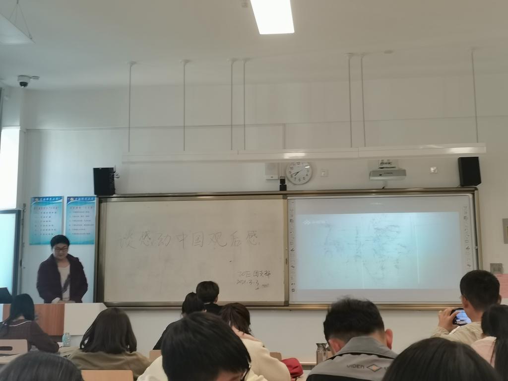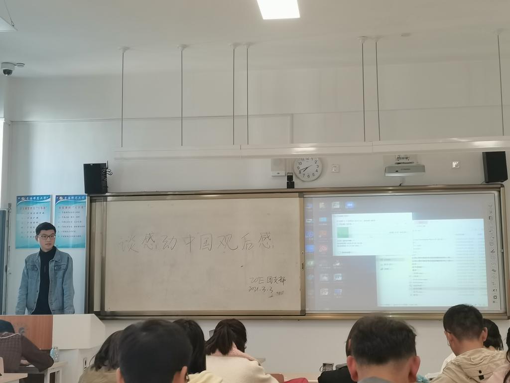 观看完视频后同学们作了交流发言。大家认为,“感动中国”的意义不仅是给国人带来感动,更是要化为“奋斗中国”之力。身为这个时代中的一分子,站在“奋斗中国”的大舞台上,每个人都能用担当、奉献、热情,演绎出自己的精彩。同学们表示,时代精神必须传承,感动事迹必须弘扬,广大青年只有以英雄为榜样,脚踏实地努力拼搏,才能不负韶华,才能在民族复兴大业中贡献力量。