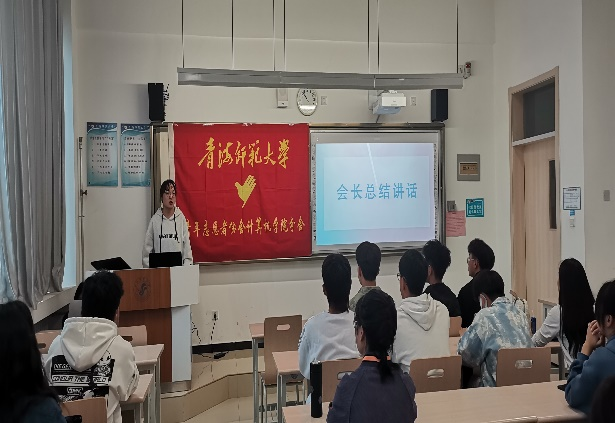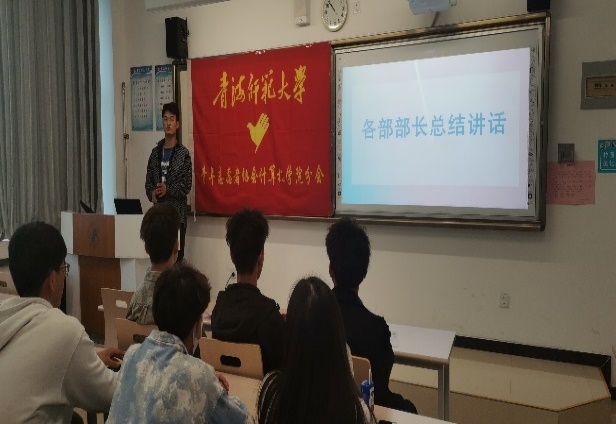 竞选大会上,首先由本届会长刘雪做工作总结,对这一届的协会的发展做了全面梳理,对成员的工作给予了充分的肯定。随后由各部门部长进行总结交流,部长在总结各部这一年的工作的同时还不忘给换届成员传递工作经验。交流发言结束后,进行了干部竞选。竞选人员依次上台进行竞选演说,表达了自己对青年志愿者协会的热爱以及对自己工最的规划。