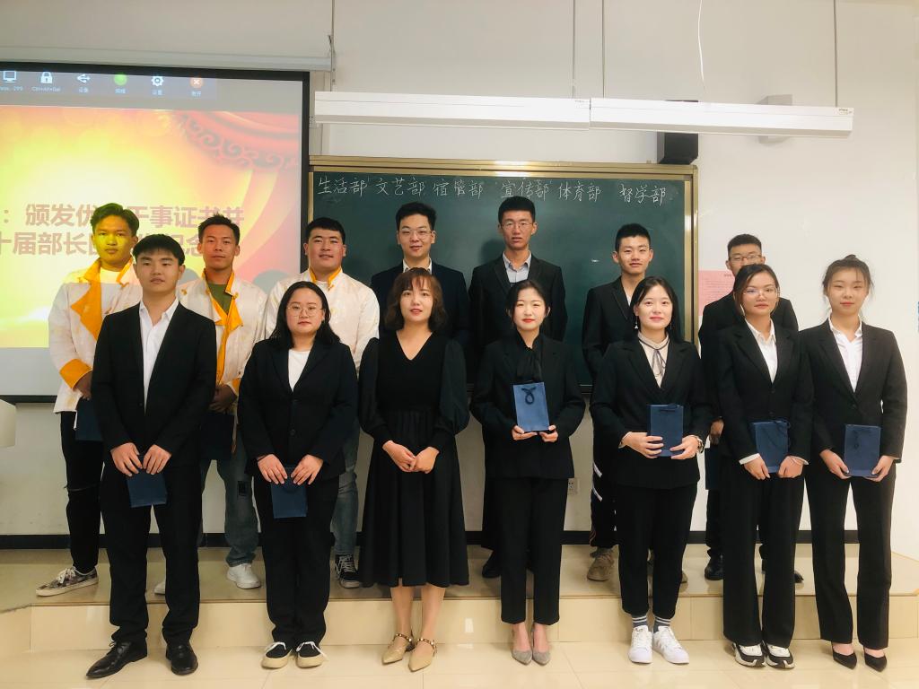 换届大会在校歌声中拉开帷幕。第十届员工会主席王安睿代表本届员工会做了工作总结,对这一学年员工会工作进行了全面梳理,并对员工会的未来给予美好祝愿。会上,大家一起观看了年度风采视频集锦,共同回顾工作中的点点滴滴,见证自己的成长。辅导员赵丽雯老师给优秀员工干部颁发荣誉证书,并为即将离任的员工干部赠送了纪念品,对他们一年来的辛勤工作表示感谢。随后,经过一个半小时的竞选评议,最终确定了公司第十一届员工会组成人员,李琦、李加才让和严桂组成新一届主席团。评选结束后,辅导员田正雄老师做了总结发言,对全体员工会成员一年来对公司员工工作的大力支持和努力付出表示衷心感谢,并对新一届员工会干部提出了要求与希望,希望大家精诚团结,为公司员工工作再立新功。