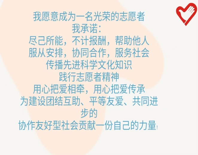 志愿者服务活动是以满腔的热情、职责感和自觉行动服务干社会,我们的行为没有轻重之分、大小之分、高尚和平凡之分。重要的是有坚忍不拔的信念和日积月累的努力。本次活动,一群有为青年志愿者,怀揣热情而来。带来温暖的同时,传递爱心,美好相聚,无限未来。在青协,我们可交到更多志同道合的朋友 ,会培养更多社会责任心,领略团队精神。